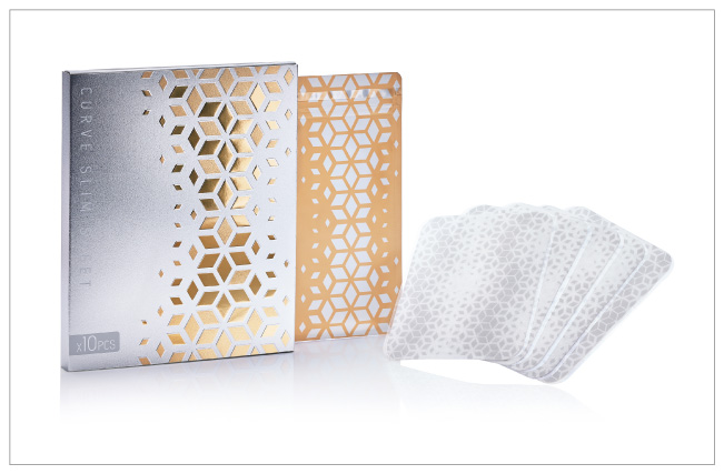 カーブシートは、貼るだけでスリミング効果が得られるホスファチジルコリン含有のボディシートです。「経皮吸収の可能性」をテーマに研究開発を行ってきた当社が、「ホスファチジルコリン」と「L-カルニチン」を含有した経皮吸収製剤の開発に成功しました。就寝前に気になる部位に貼るだけで、睡眠時間を利用したポイントスリムが可能です。本品の配合技術及び製剤技術については、日本の他・米国・仏国・英国・伊国・独国で特許が成立しています。
